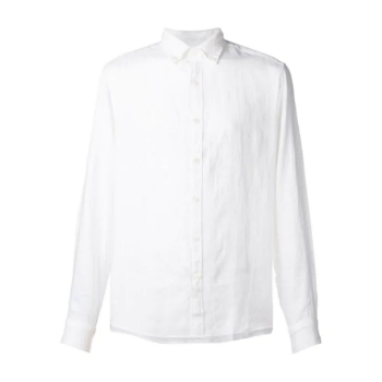 White linen button-up shirt from Michael Kors featuring a classic collar, a fron