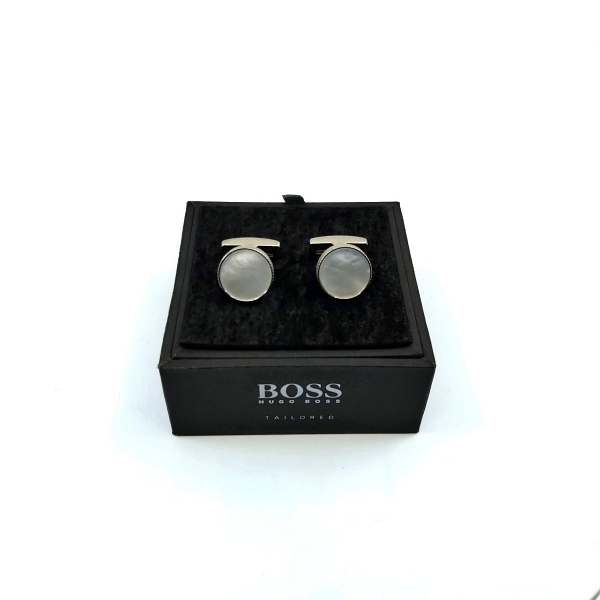 Hugo Boss Tailored T-Baldo Mother of Pearl and Steel Cufflinks. Cufflinks made of 100% Brass and White Nacre. Size 15mm...