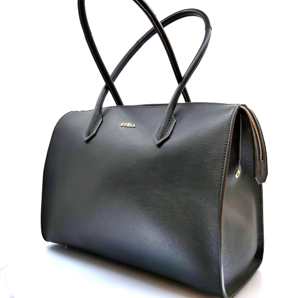 The spacious Furla Pin satchel bag in grainy leather is fitted with twin handles in leather to al