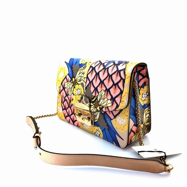 Furla's iconic Metropolis cross body bag gets a cheery spring upgrade with this allover pineapple print. Boasting a vibrant design, this bag is crafted with a chain and leather strap, a foldover top with clasp closure, an internal zipped pocket, an internal lo...