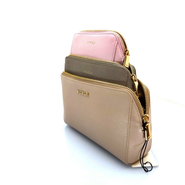 Treat yourself to the beauty case brought to you by Furla. Colors include Beige, Grey and Pink