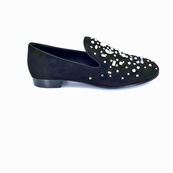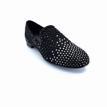 Black 'David' loafers from Giuseppe Zanotti. Made of suede. Encrusted with black studs. Black leather sole....