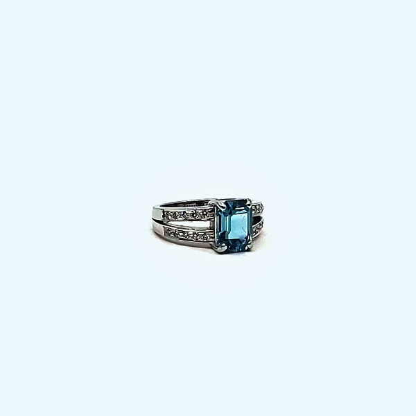 Blue tourmaline with Diamonds ring
