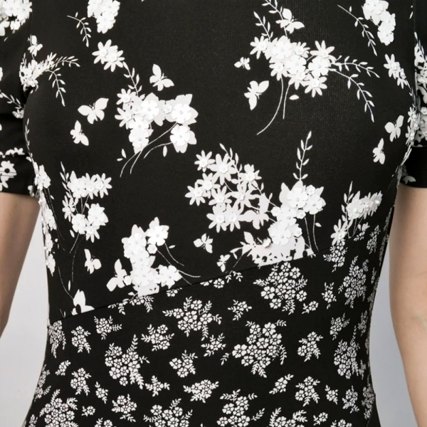 Black and white floral shift dress from Michael Michael Kors featuring a round neck, short sleeve