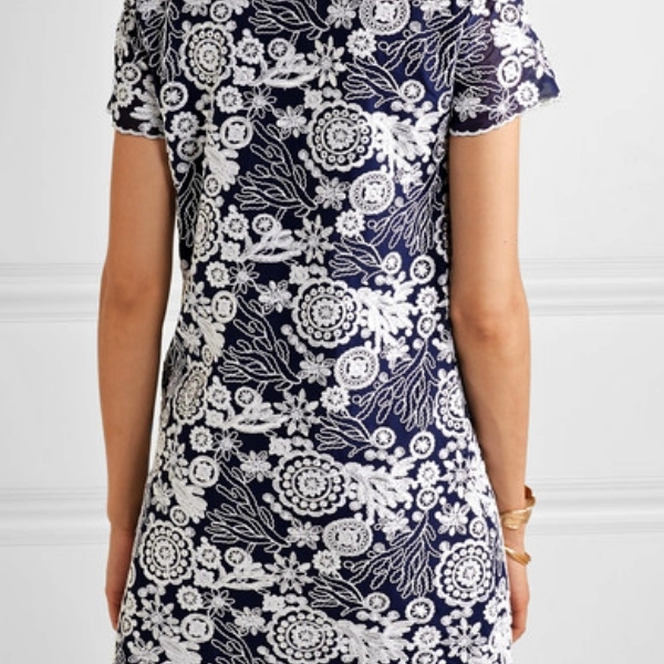 MICHAEL Michael Kors' mini dress is cut from crinkled-georgette that's embroidered with an intricate pattern resembling vintage lace. Modeled after classic polo shirts, it's cut in a slightly loose silhouette and has a smart collar and pretty scalloped edges. ...