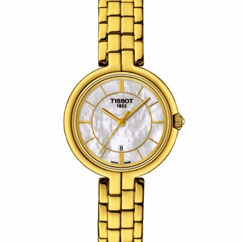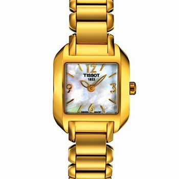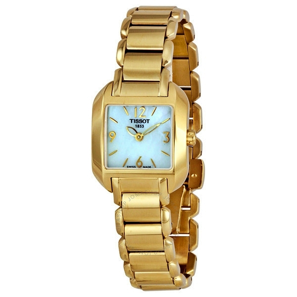 Yellow gold PVD stainless steel case and bracelet. Fixed yellow gold-plated yellow gold PVD bezel. White mother of pearl dial with yellow gold-tone hands and index hour markers. ...