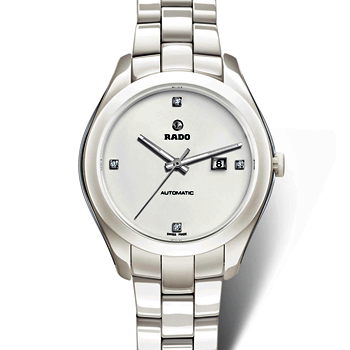 High-tech white ceramic and stainless steel case with a high-tech white ceramic bracelet. Fixed white ceramic bezel. White dial with silver-tone hands. Diamonds set at the 3, 6, 9 and 12 o'clock positions. ...
