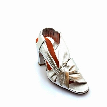 Beige leather sling back high heeled sandals from Santoni featuring an open toe, a branded insole