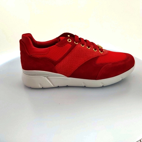 Elegance and sport joined together in these suede runners decorated with elaphe and neoprene mesh inserts. Matching lace-up fastening. Padded heeltab and heelcounter. Slidesafe rubber sole. Leather lining. Removable insole. ...