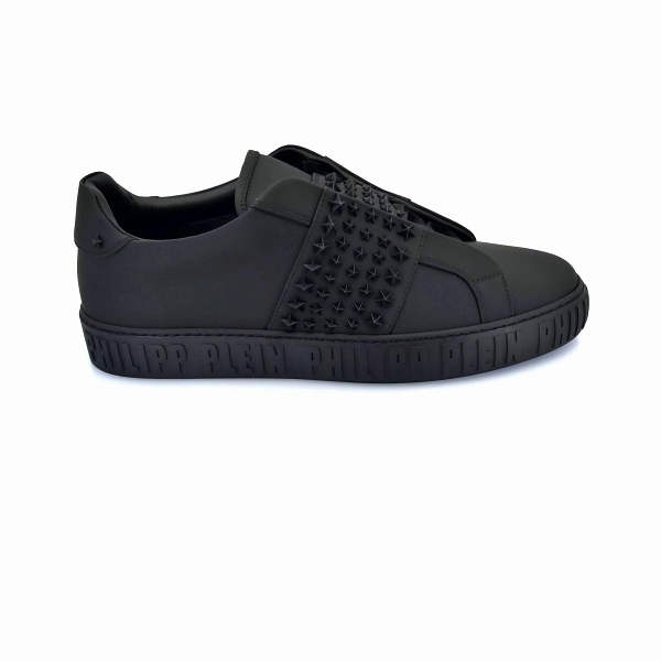 Calf leather slip on black color model with round tip cotton laces decorative colored studs’ leather interior rubber sole with logo composition. Made in Italy....