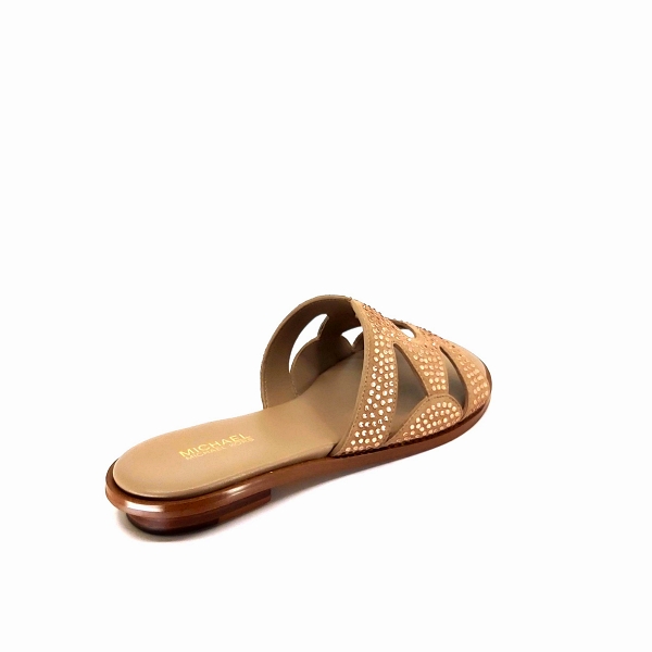 Annalee slide by Michael Kors in beige suede leather illuminated by small crystals in tone. Insol
