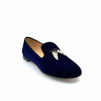 Velvet loafers detailed with gold-tone metal signature, rope trim and bi-color rubber sole.