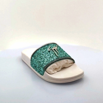 Giuseppe Zanotti presents these luxurious beach slides, a must have for summer. The cushioned rubber Halley Slides feature a mint crystal band which is embellished with Giuseppe Zanotti's iconic zip detailing....