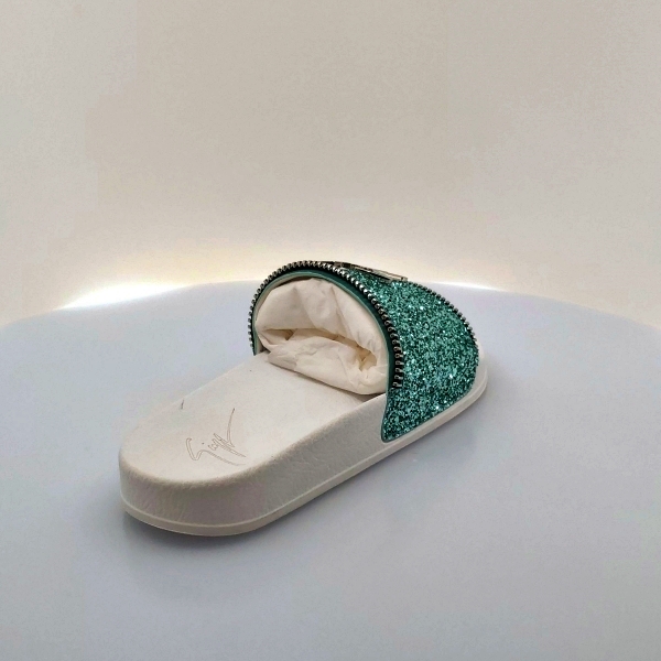 Giuseppe Zanotti presents these luxurious beach slides, a must have for summer. The cushioned rub