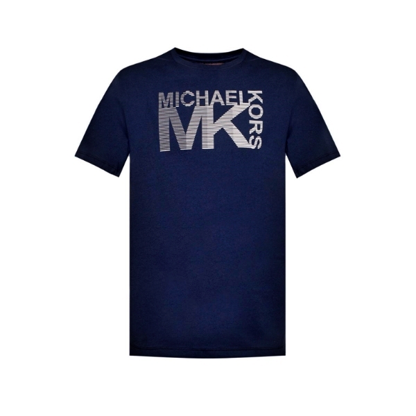 Navy blue T-shirt from Michael Kors. Made of cotton. Decorated with a logo print in black and whi