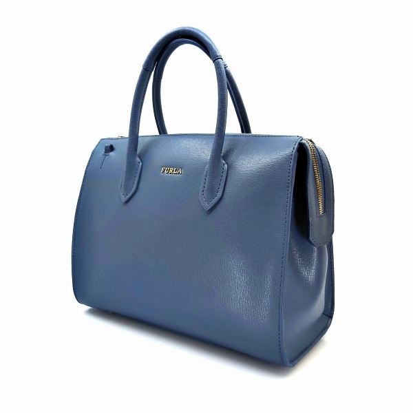 The Furla Pin satchel bag is made of textured leather and comes with a double handle and one adju