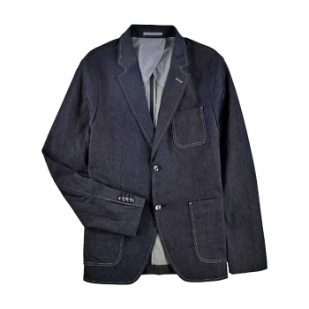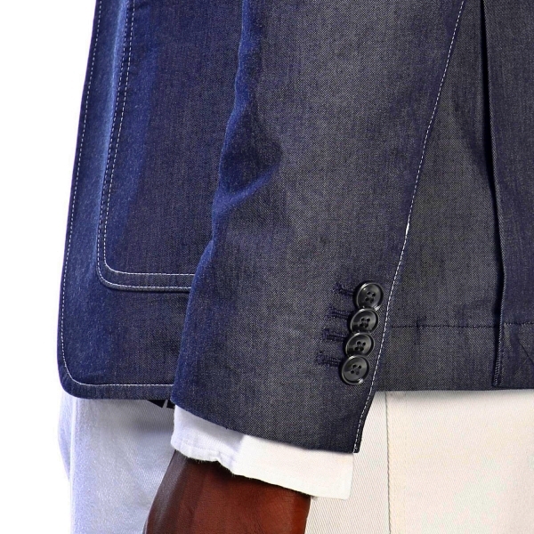 Classic two-button blazer made from 100% textured wool woven in Italy. Side vents and half-lined.