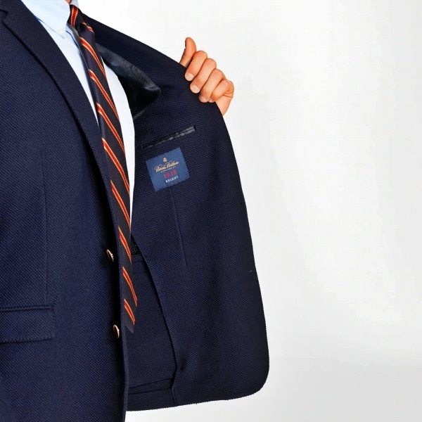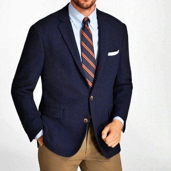 Classic two-button blazer made from 100% textured wool woven in Italy. Side vents and half-lined. Regent fit. Dry clean. Made in the USA from imported materials....
