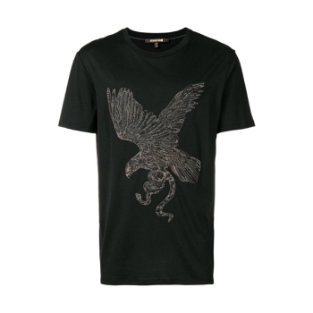 Black cotton embellished eagle T-shirt from Roberto Cavalli featuring a round neck, short sleeves