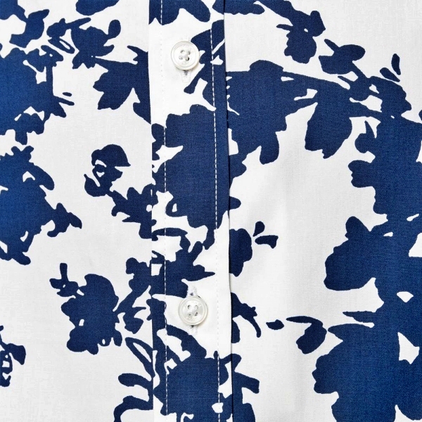 This stylish sport shirt has a bold floral pattern and a shorter length, allowing it to be easily